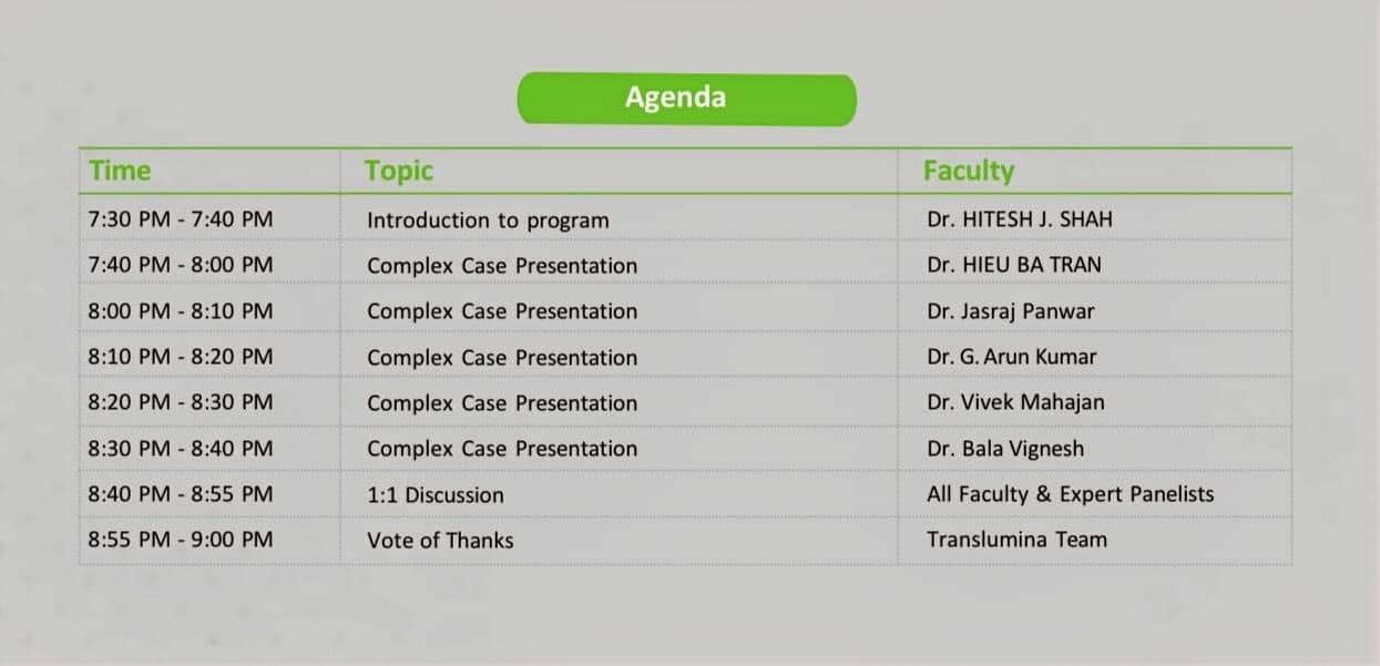 This educational event is intended solely for healthcare professionals only in Cardiology and is not for marketing or promoting any medical practice, use of medical practice, use of medicine, use of instrument or device. The session may be recorded and used for training; copyright remains with the Translumina Team. Attendee details may be used by the Translumina team for scientific follow-up. The scientific deliberation is independent of Translumina, and speakers may share clinical experiences that include off-label uses in all the countries where the sessions are being watched. Translumina team do not take any responsibility of the scientific accuracy or the clinical outcome of the discussions. TTPL disclaims any liability for video quality, internet disruptions, transmission issues, or IT connectivity.