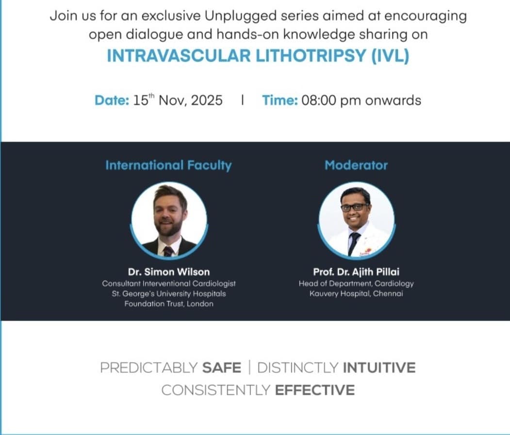 This educational event is intended solely for healthcare professionals only in Cardiology and is not for marketing or promoting any medical practice, use of medical practice, use of medicine, use of instrument or device. The session may be recorded and used for training; copyright remains with the Translumina Team. Attendee details may be used by the Translumina team for scientific follow-up. The scientific deliberation is independent of Translumina, and speakers may share clinical experiences that include off-label uses in all the countries where the sessions are being watched. Translumina team do not take any responsibility of the scientific accuracy or the clinical outcome of the discussions. TTPL disclaims any liability for video quality, internet disruptions, transmission issues, or IT connectivity.