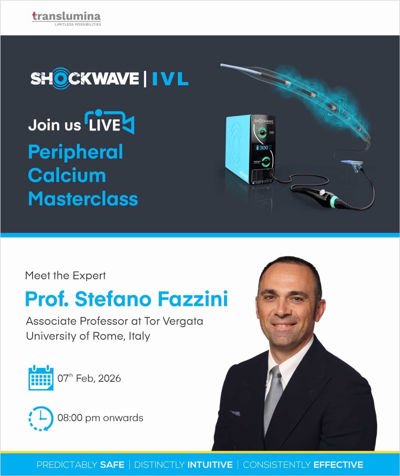 This educational event is intended solely for healthcare professionals only in Cardiology and is not for marketing or promoting any medical practice, use of medical practice, use of medicine, use of instrument or device. The session may be recorded and used for training; copyright remains with the Translumina Team. Attendee details may be used by the Translumina team for scientific follow-up. The scientific deliberation is independent of Translumina, and speakers may share clinical experiences that include off-label uses in all the countries where the sessions are being watched. Translumina team do not take any responsibility of the scientific accuracy or the clinical outcome of the discussions. TTPL disclaims any liability for video quality, internet disruptions, transmission issues, or IT connectivity.
